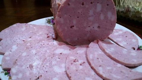 Готовую колбасу охладить в холодной водой и убрать в холодильник минимум на 8-10 часов, лучше - на сутки.